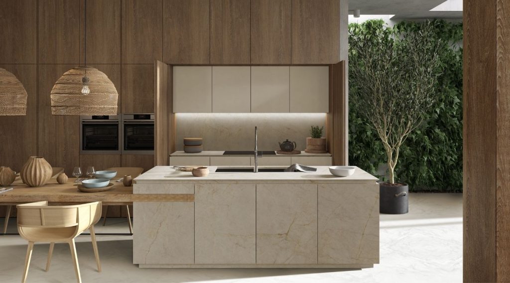 Colossal Cream is the ideal choice for lovers of marbled designs. It stands out for its golden veins that stand out against a cream-vanilla background. The perfect touch of luxury to create solemn and colossal kitchens and bathrooms. Where warmth takes center stage, to create timeless “dream rooms.”