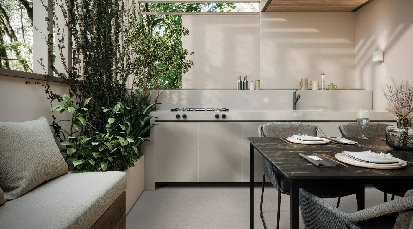 Limestone, a design inspired by natural-colored limestone with a soft grain that gives it unmatched texture and richness. It is ideal for bringing harmony and warmth to your spaces without losing sophistication.